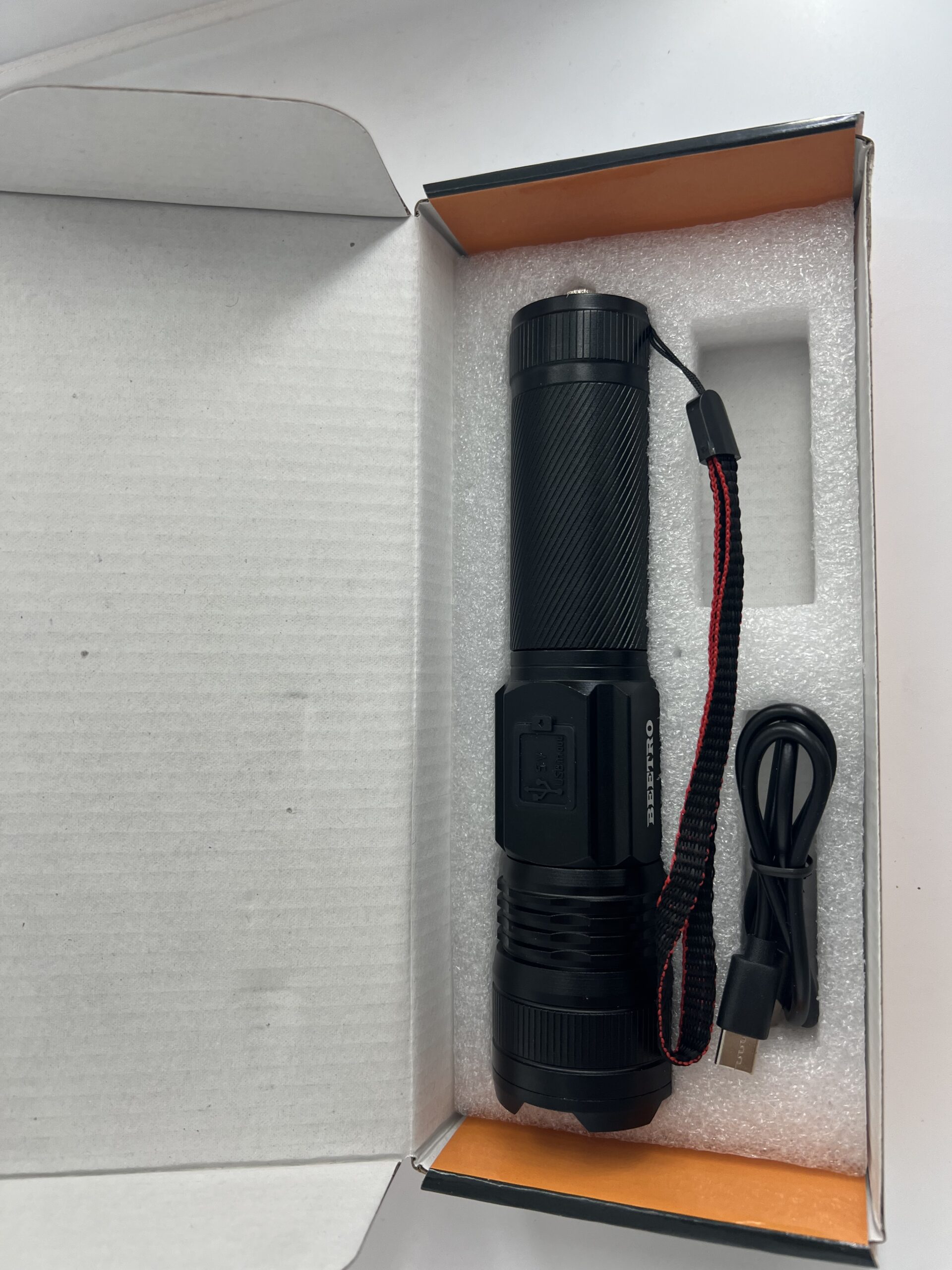 Contenu : lampe de poche, batterie et câble USB
