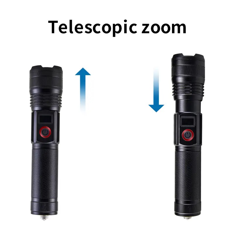 Caractéristiques : super lumineuse, zoom, rechargeable par USB, batterie externe