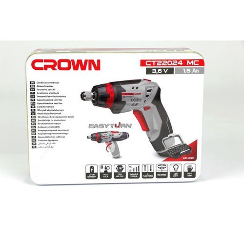 - مفك كهربائي ذو 31 قطعة من CROWN هو أداة محمولة وعملية سهلة الحمل و التخزين ، بوزن 450 جم ، مما يجعله مثاليًا لتجميع الأثاث بسرعة وسهولة. جهاز لاسلكي وقابل للشحن ، مع سعة بطارية تبلغ 1,5 A / H ، يوفر لك القيام بالعديد من الأعمال اليدوية في المنزل.